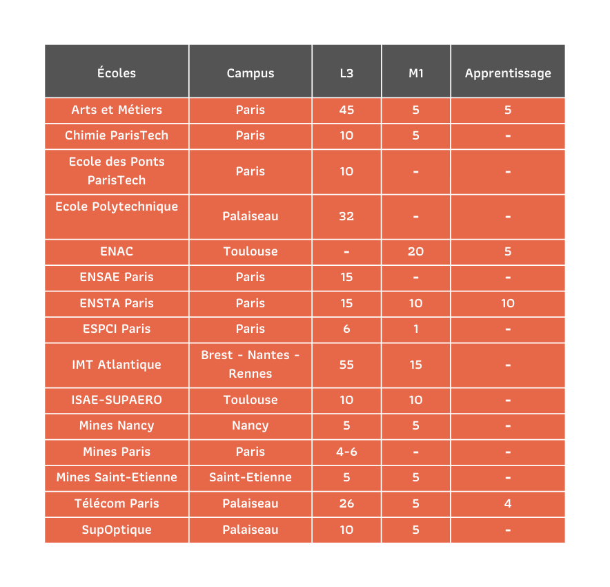 • ne pas avoir effectué 2 ans de CPGE et / ou ne pas avoir passé de concours d’ingénieurs
